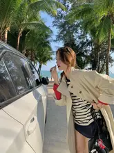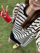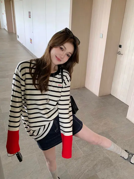 撞色ストライプニットセーター【コットン・ラウンドネック・春用】(セットアップ対応)