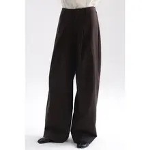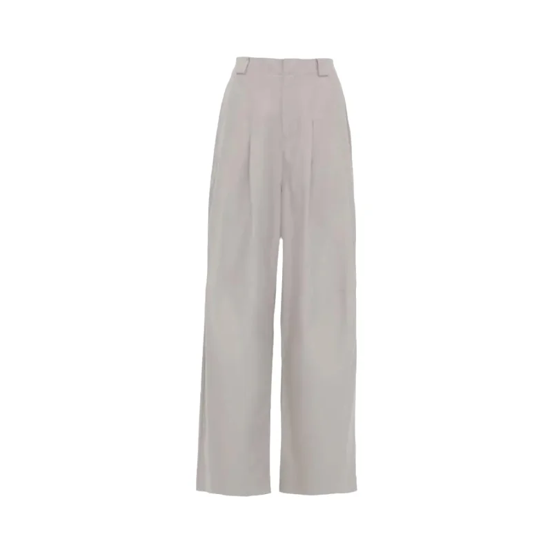 高腰設計で体型をすっきり見せ、オフィスにも最適な大人カジュアルです。