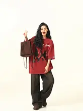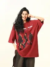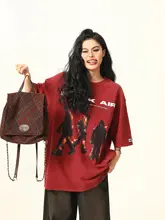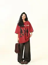 ユニセックス アメリカンスタイルヴィンテージ風街頭プリント半袖Tシャツ【ルーズフィット・夏用】