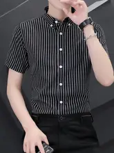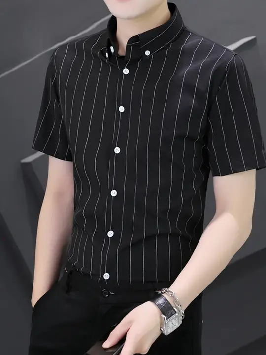 爽やかなストライプデザインの半袖シャツ【アイスシルク・極上の柔らかさ・ウエストシェイプ】