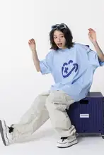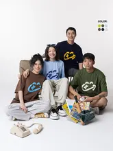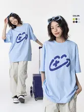 カジュアルなカップル用プリントコットンTシャツ【極上の柔らかさ・クルーネック・短袖】(セットアップ対応)