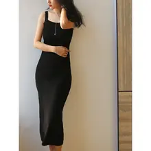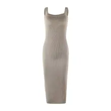 カキ色のシンプルなニットキャミソールワンピース【夏用・膝下丈・スタイルアップ効果】(セットアップ対応)