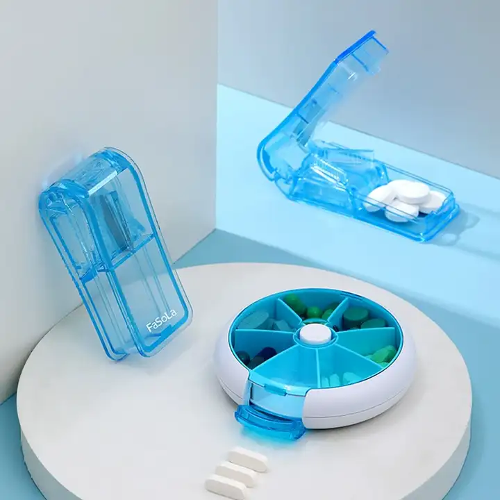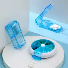 便利な持ち運び型 丸型薬ケース【分割収納・ミニカッター付き】(セットアップ対応)