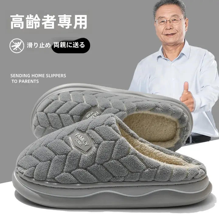 防滑棉製ルームシューズ【厚底・保温・中高年向け・秋冬用】