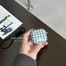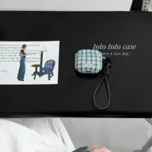 おしゃれな水色チェックのAirPods用ケース【AirPods Pro2・AirPods 3対応・冬用】