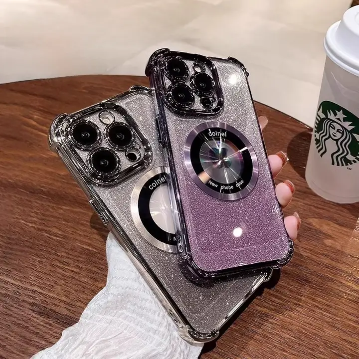 透明デザインのiPhone用ケース【磁気吸着スタンド対応・豪華ラメ・衝撃吸収・高級感】