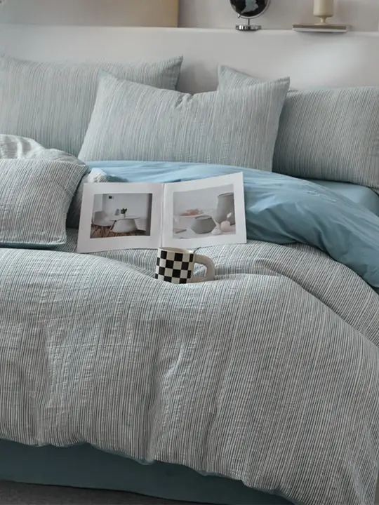 全棉色織り提花の寝具セット【四点セット・純棉・ベッドカバー・シーツ】(セットアップ対応)