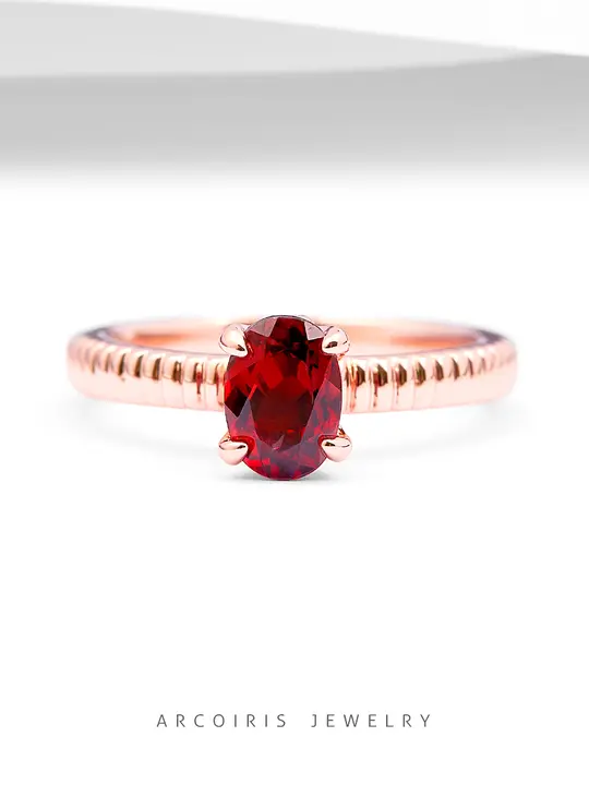 天然石榴石のS925純銀製ローズゴールドリング【華やかで優雅な女性用ギフト】