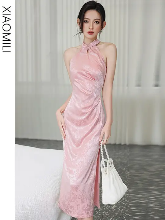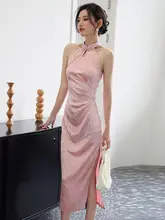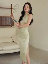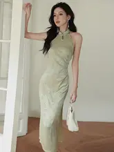 新中式刺繍デザインのノースリーブワンピース【国風・ボタン付き・レトロな雰囲気・体型カバー】