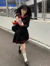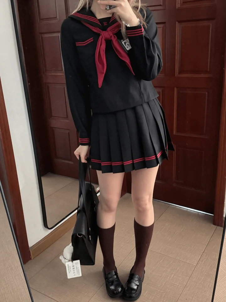 オリジナルJK制服【黒と赤のセーラー服・ウエストシェイプデザイン・日本風】(セットアップ対応)