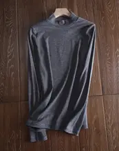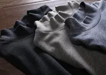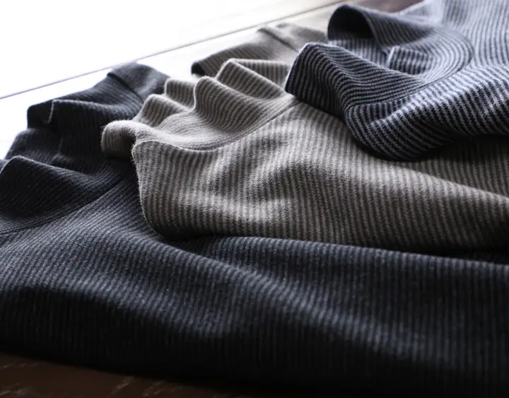 女性用ハーフタートルネック、ライトグレーと白のストライプ