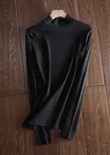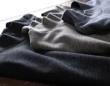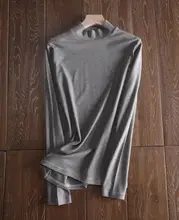 極上の柔らかさの半高領細ストライプTシャツ【長袖・コットン・レディース・リブデザイン】