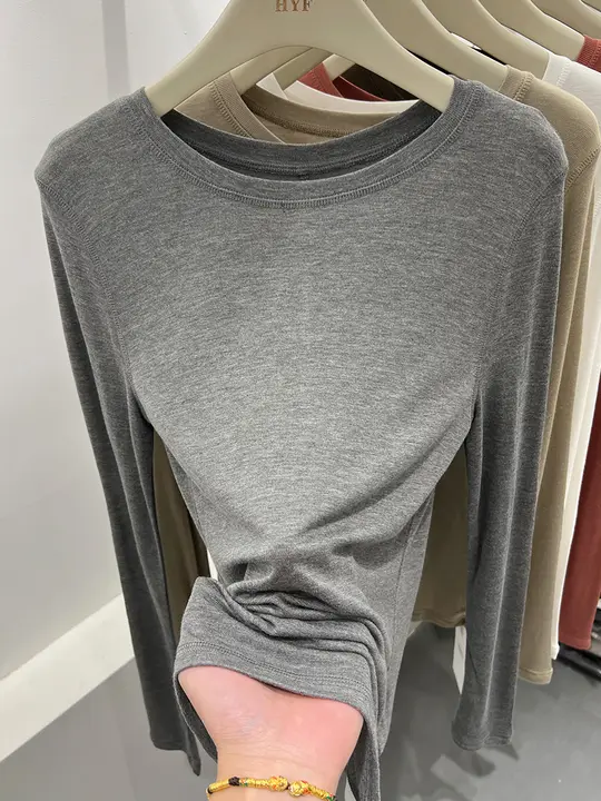 無地の柔らかい長袖Tシャツ【シンプル・レディース・タイトフィット】