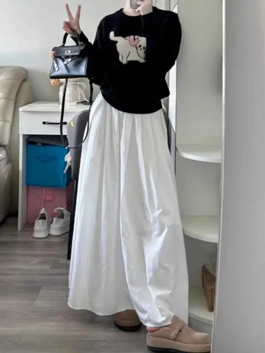 白色のドレープミディアム丈スカート【Aライン・フレアデザイン】(セットアップ対応)