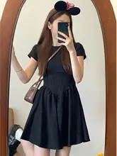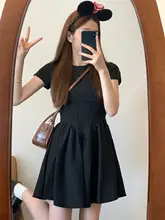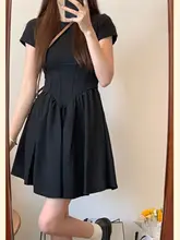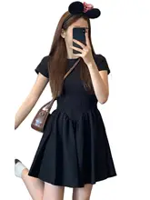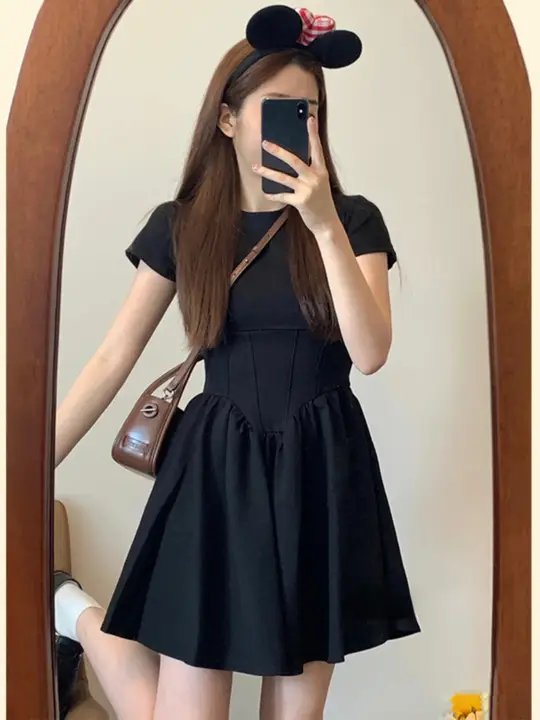 上品なブラックフィッシュボーンワンピース【ウエストシェイプ・Aライン・秋用】