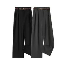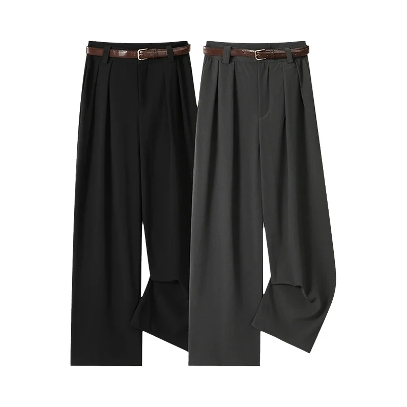ハイウエストストレートパンツ【細身デザイン・フィット・ロング丈】(セットアップ対応)