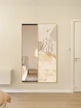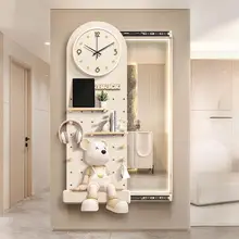 オイルクリーム風スライド全身鏡【時計付き・隠せるデザイン・壁面装飾用】