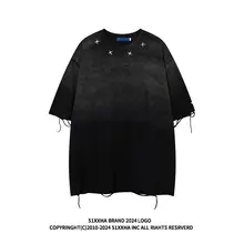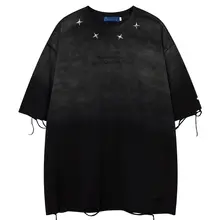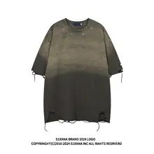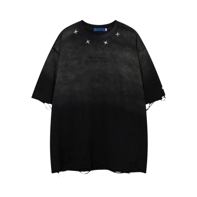 ヒップホップストリートスタイルのヴィンテージ風ダメージ加工半袖Tシャツ【ユニセックス・デ�ザイン性の高い】