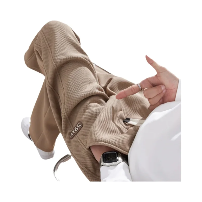 冬季用ワッフルテクスチャーのカジュアルワイドパンツ【ストレートスタイル・男性用・春秋用】(セットアップ対応)