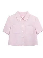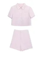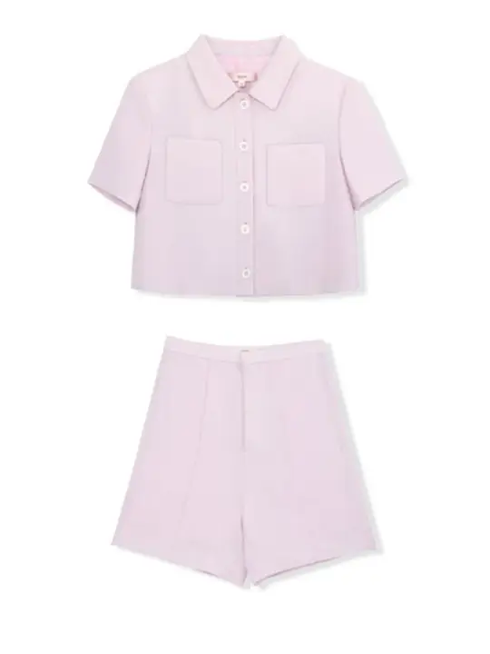 粉色の三醋酸製レトロボックスシルエット短袖ジャケット【バermudaショーツ対応】(セットアップ対応)