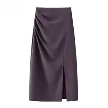 紫色 ツイードスカート【ハイウエスト・スリットデザイン・ドレッシーな印象】
