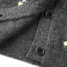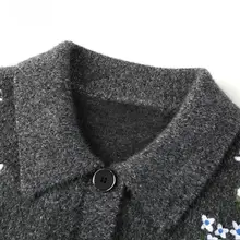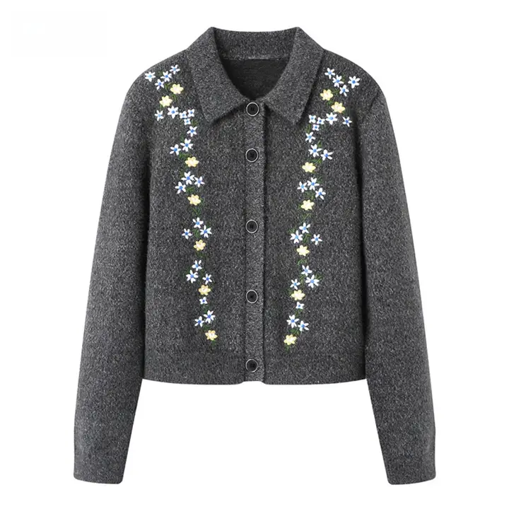 グレーの刺繍入りニットポロシャツ【短め・小柄向け・上品なデザイン】