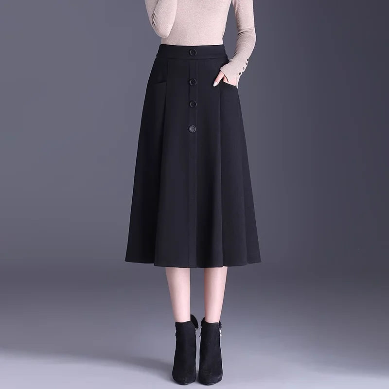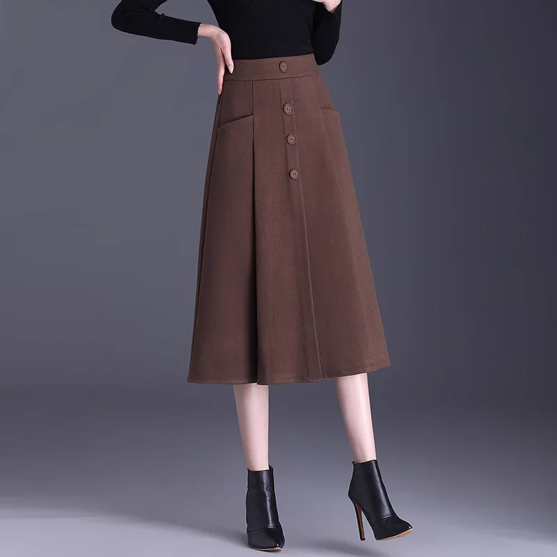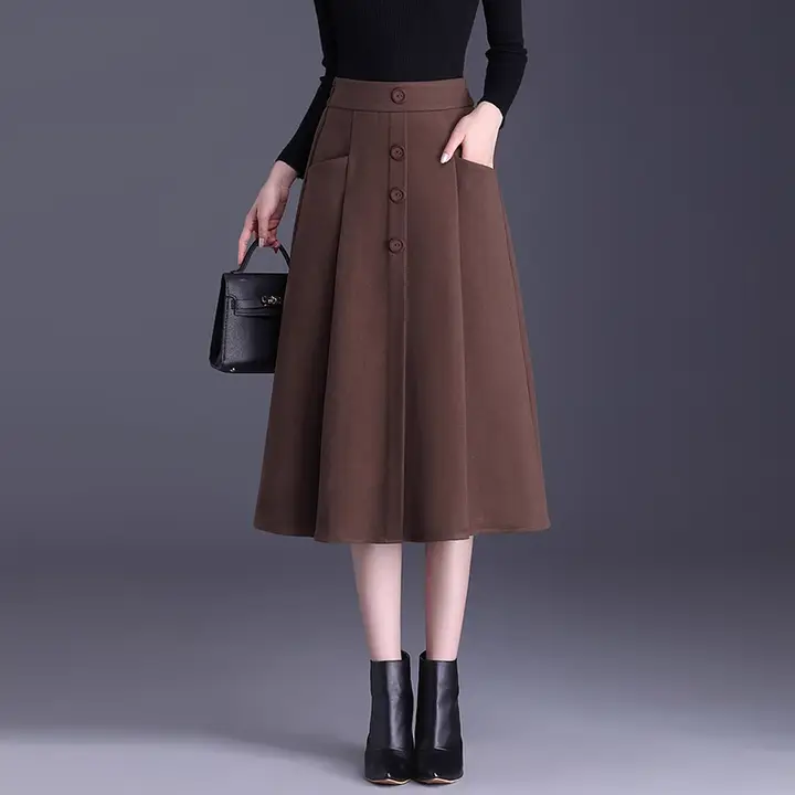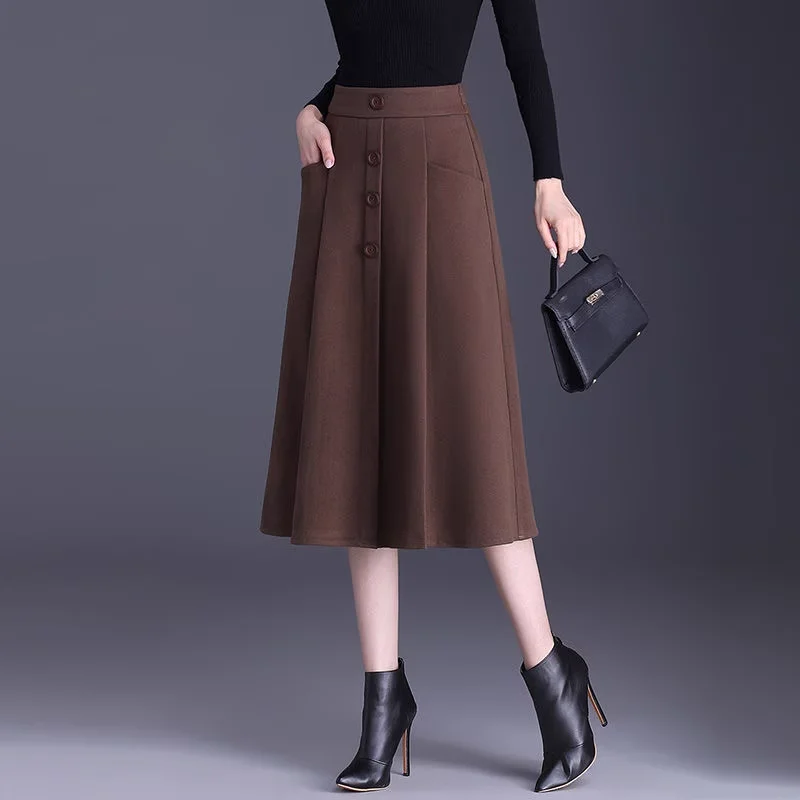 ウール混素材のAラインスカート【通勤・長め丈・シンプルデザイン・体型カバー】