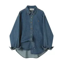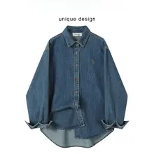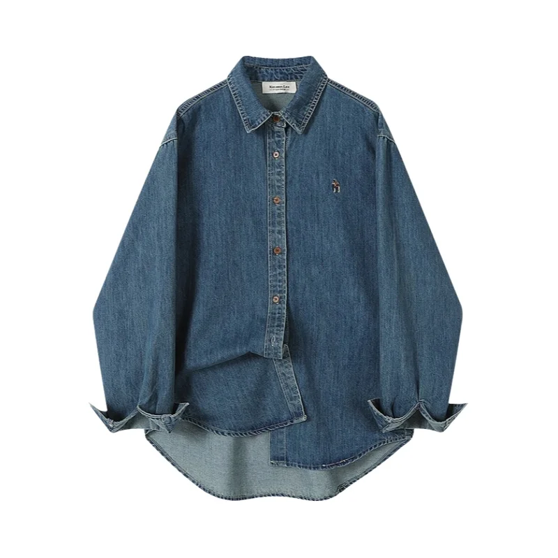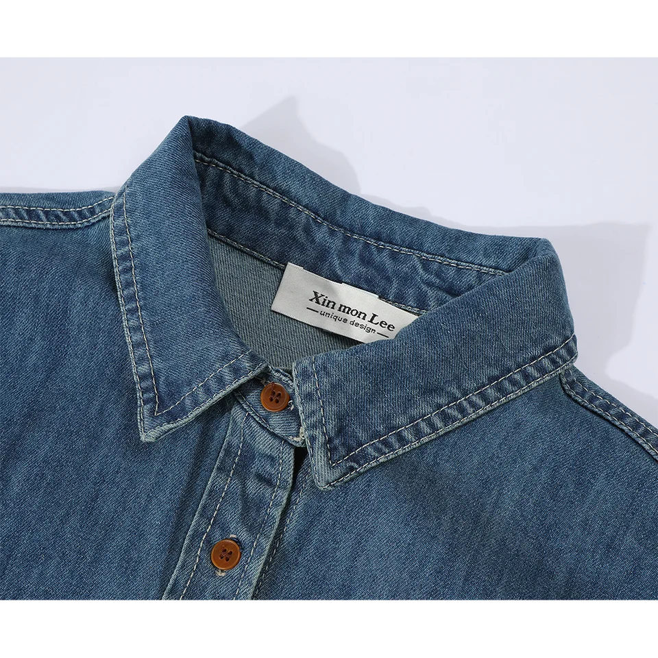 春夏用ヴィンテージ風デニムシャツジャケット【刺繍デザイン・フィット】