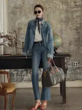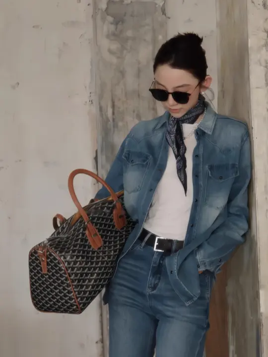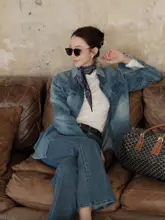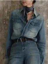 春季用長袖デニムシャツ【フィット・お洒落な重ね着スタイル】