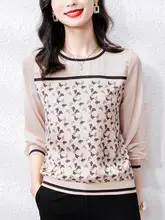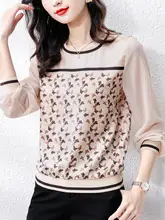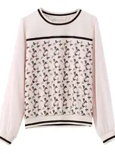 流行の大サイズ女性用雪纺長袖トップス【デザイン性のあるパッチワーク】