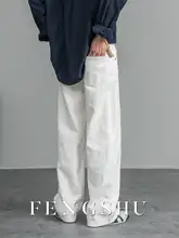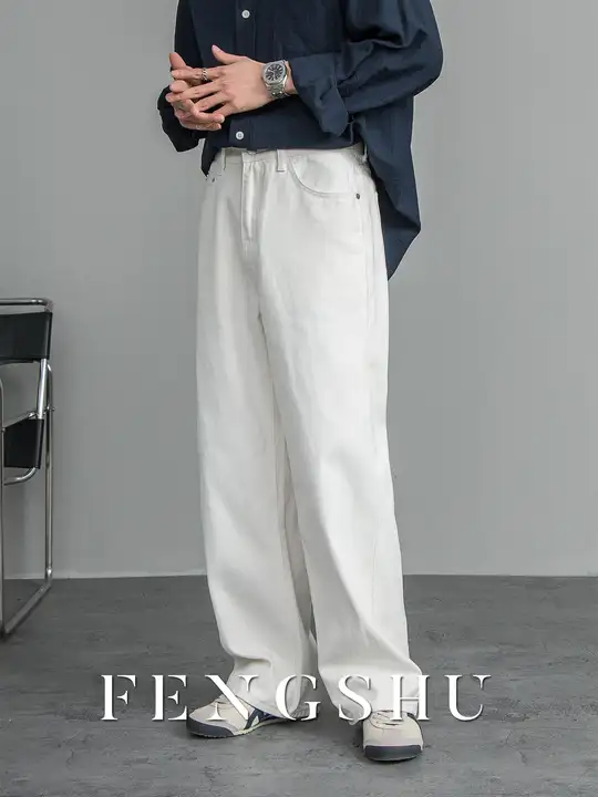 春夏用コットン製ホワイトデニムパンツ【ゆったりストレート・カジュアル・スリム効果】