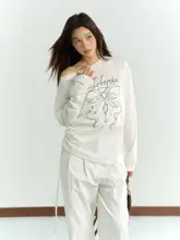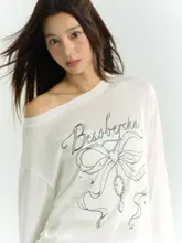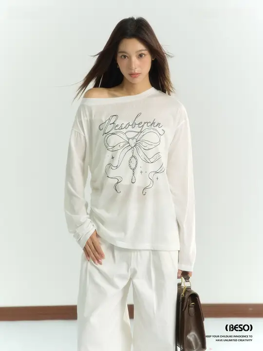 リボンプリントの天絲薄手防晒シャツ【夏用・斜め肩・長袖】