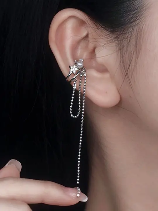 シルバー スター パール タッセル イヤー クリップ 1 個