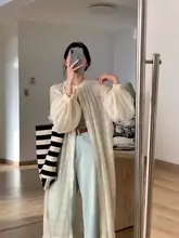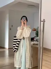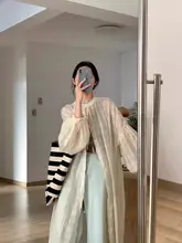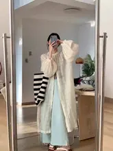 夏季向けの高級感ある女性用ランタンスリーブ長袖シャツカーディガン【防晒・中長丈】