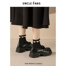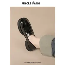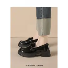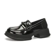 通勤用のブラックローファー【粗めのヒール・厚底・英国風】