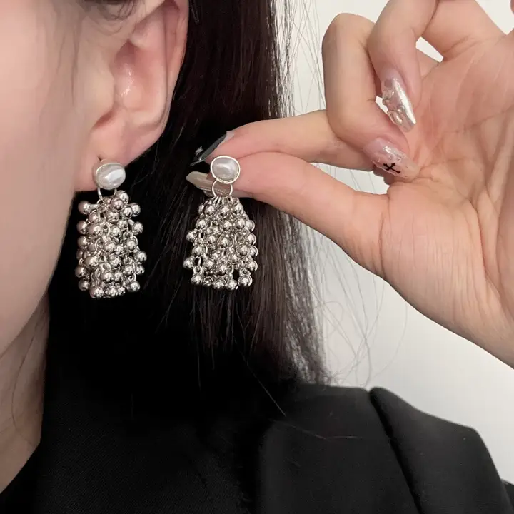 巴洛ックスタイルのパールフリンジピアス【金属製・軽やか】