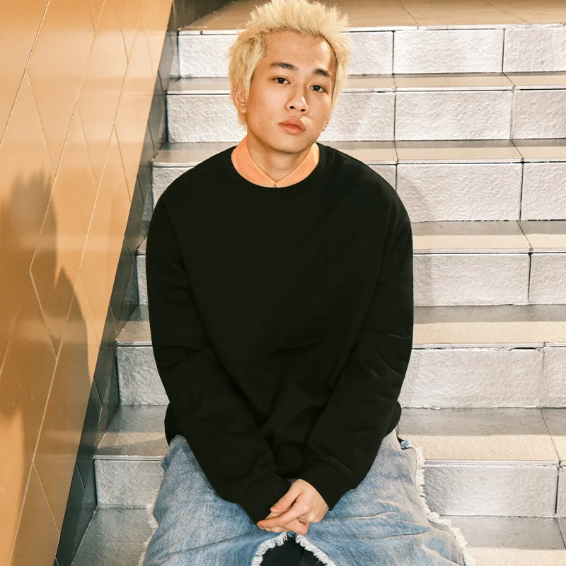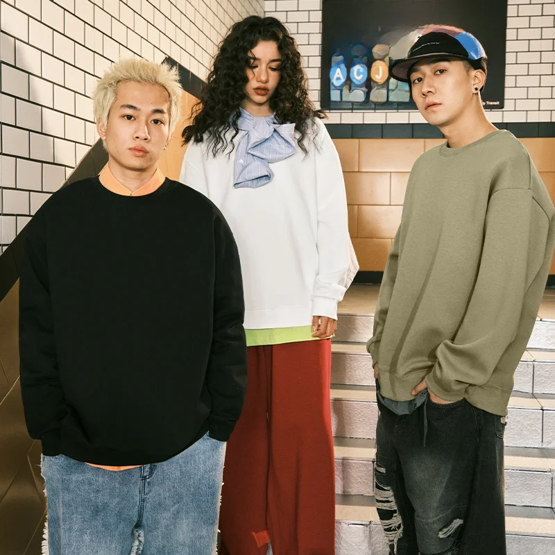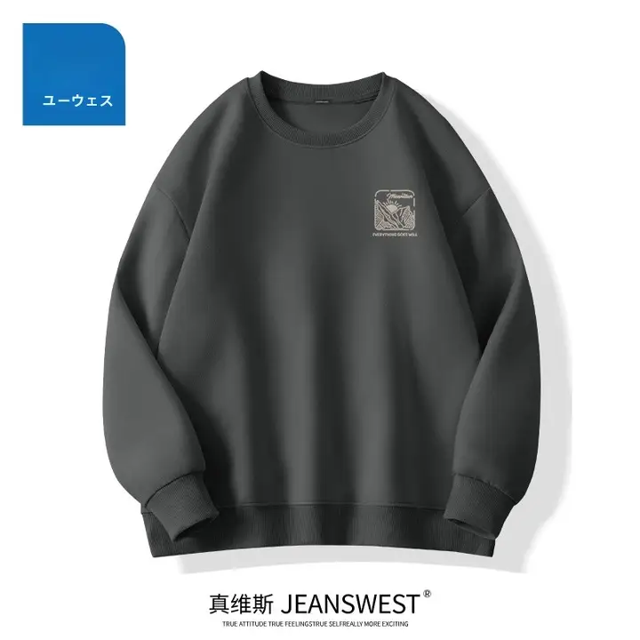 春季用 メンズプルオーバー【深灰色・無帽・丸首デザイン・カジュアルスタイル】
