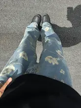 ヨーロッパとアメリカの花柄フルプリントデザイン ジーンズ 男性