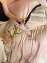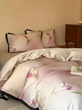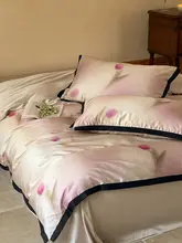 復古調チューリップデザインの極上の柔らかさのベッドリネン【高品質レイセルファイバー・コットン100%・四点セット】(セットアップ対応)
