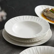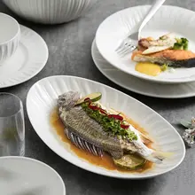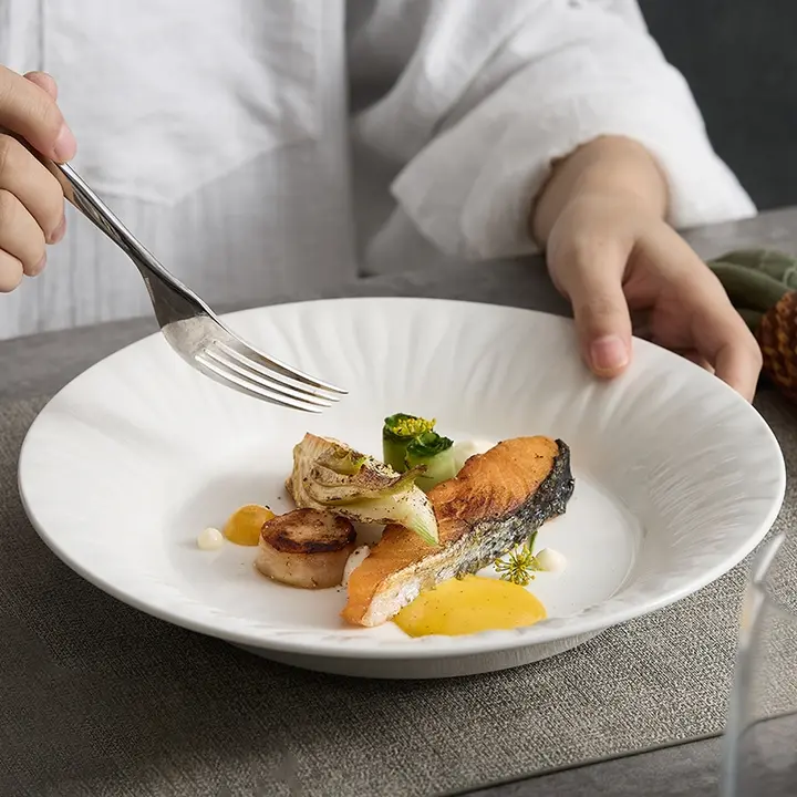 高級感ある陶器製蒸し魚皿【深皿・サラダ皿・パスタ皿】