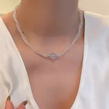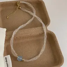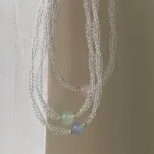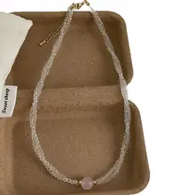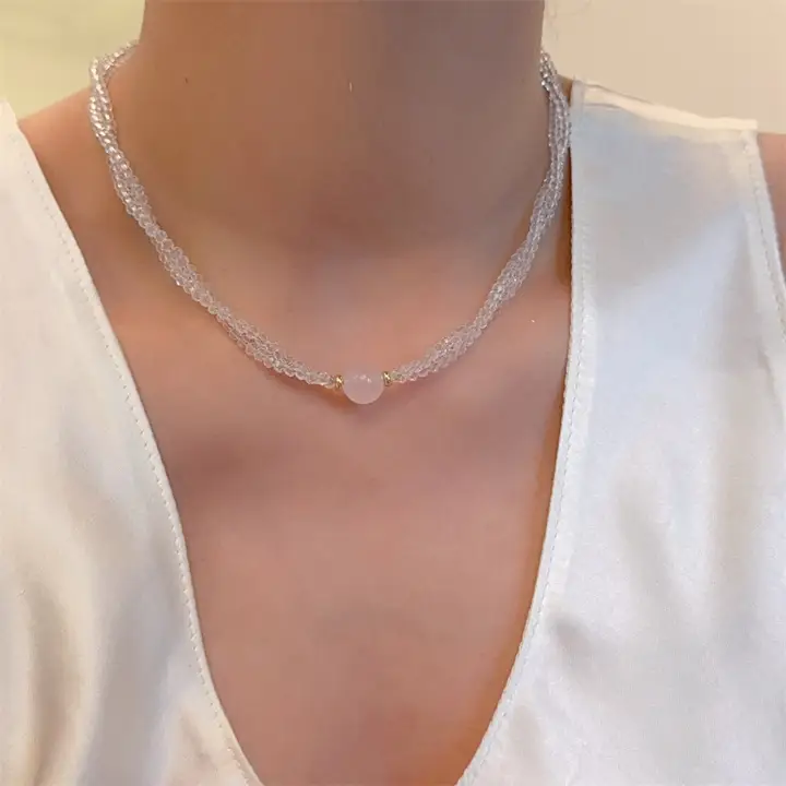 夏にぴったりなピーチピンクガラスビーズの鎖骨チェーンネックレス【シンプルで優雅なデザイン・クリスタルビーズ】