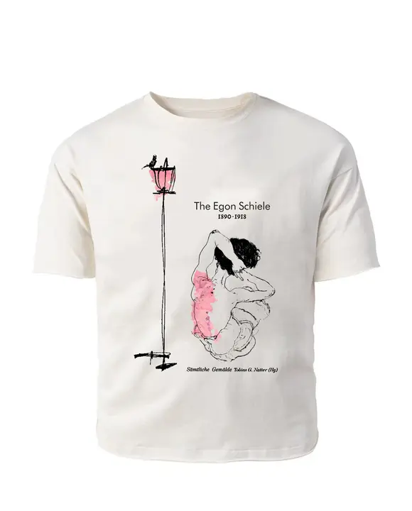 Egon SchieleデザインのショートスリーブTシャツ【襟と袖口のダメージ加工】