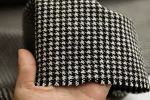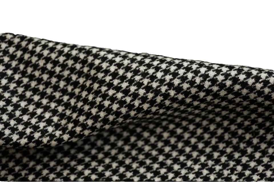 イタリア製ブラックホワイトハウンドトゥース織りウール生地【デザイナーファッション・千鳥格子】(セットアップ対応)