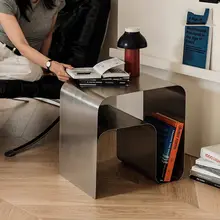 ユニークなデザインの現代風サイドテーブル【リビング用・不锈鋼製・雑誌収納】