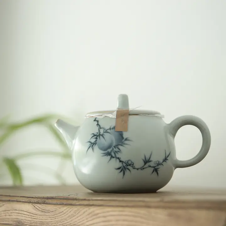 手描き青花の茶壺【小サイズ・汝瓷製・功夫茶具】