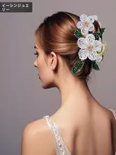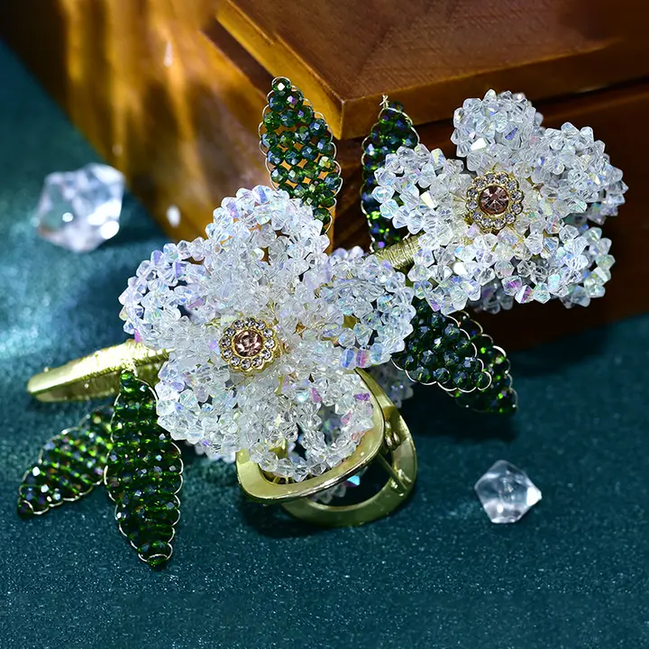 花柄デザインの両面使えるヘアクリップ【金属製・優雅な手作りクリスタルビーズ】