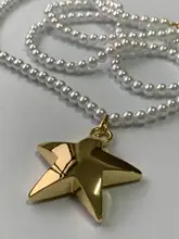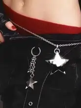 メタル光沢の大きな五角星のウエストチェーン【金銀色・パールビーズ付き】