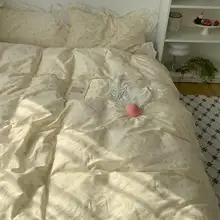 フラワーレースデザインの純綿四点セット【柔らかでナチ��ュラルな雰囲気・ベッドシーツとカバー付き】(セットアップ対応)
