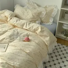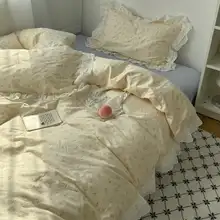 フラワーレースデザインの純綿四点セット【柔らかでナチュラルな雰囲気・ベッドシーツとカバー付き】(セットアップ対応)