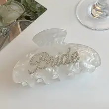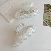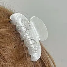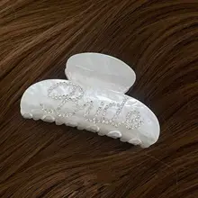 シンプルで高級感のあるデザイン!ダイヤモンド装飾のアセテート製ヘアクリップ【シャーククリップ・英字付き】